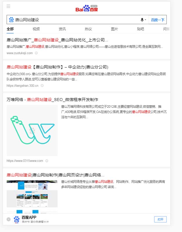 熱烈慶祝我司關鍵詞 唐山網站建設 電腦百度第一頁 手機百度第四名