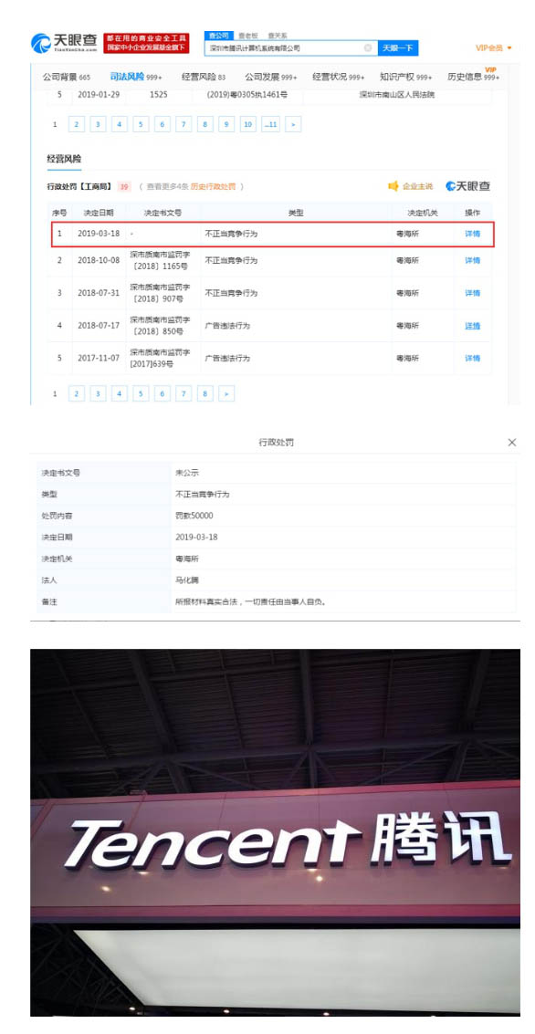 3月20日下午消息,天眼查數(shù)據(jù)顯示,3月18日,深圳市騰訊計(jì)算機(jī)系統(tǒng)有限公司新增一條行政處罰,類型為不正當(dāng)競(jìng)爭(zhēng)行為,處罰內(nèi)容為罰款5萬(wàn)。